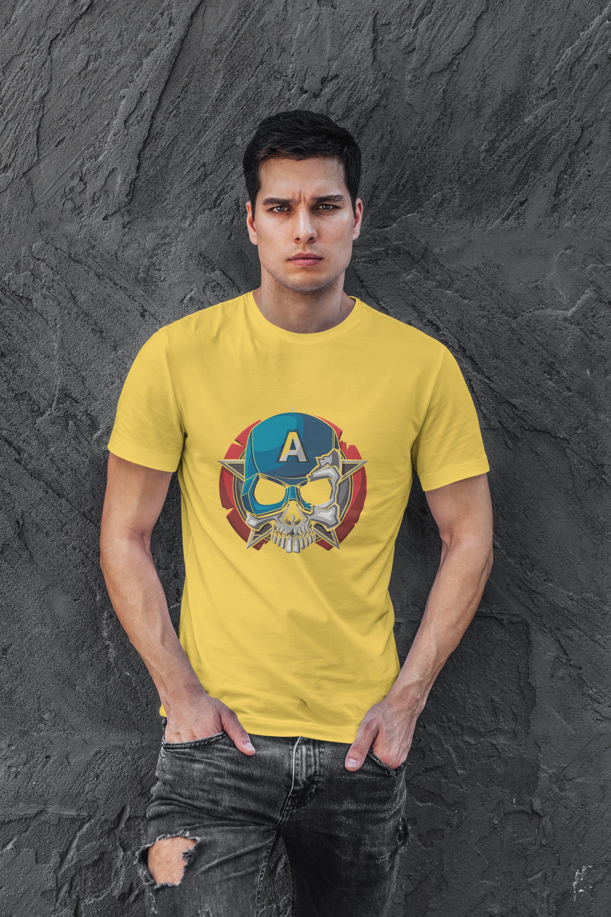 Golden Yellow solid T-shirt, has a crew neck , and short sleeves