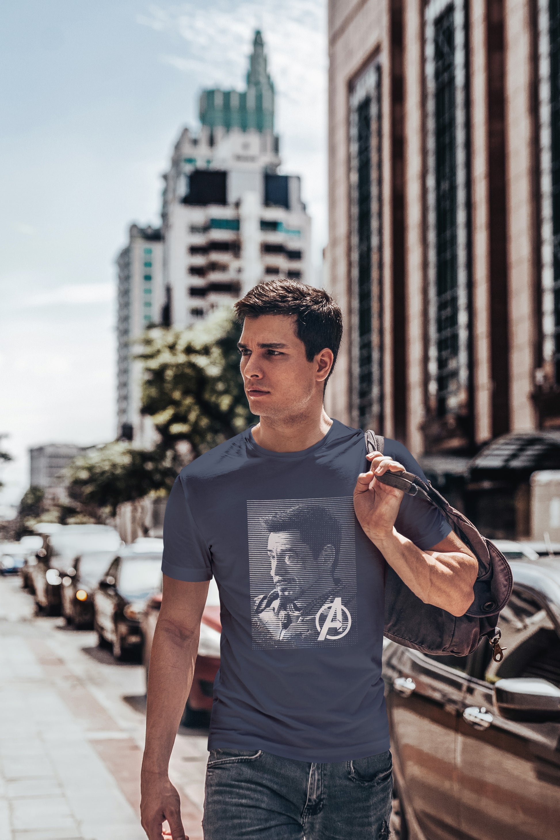 Navy Blue solid T-shirt, has a crew neck , and short sleeves