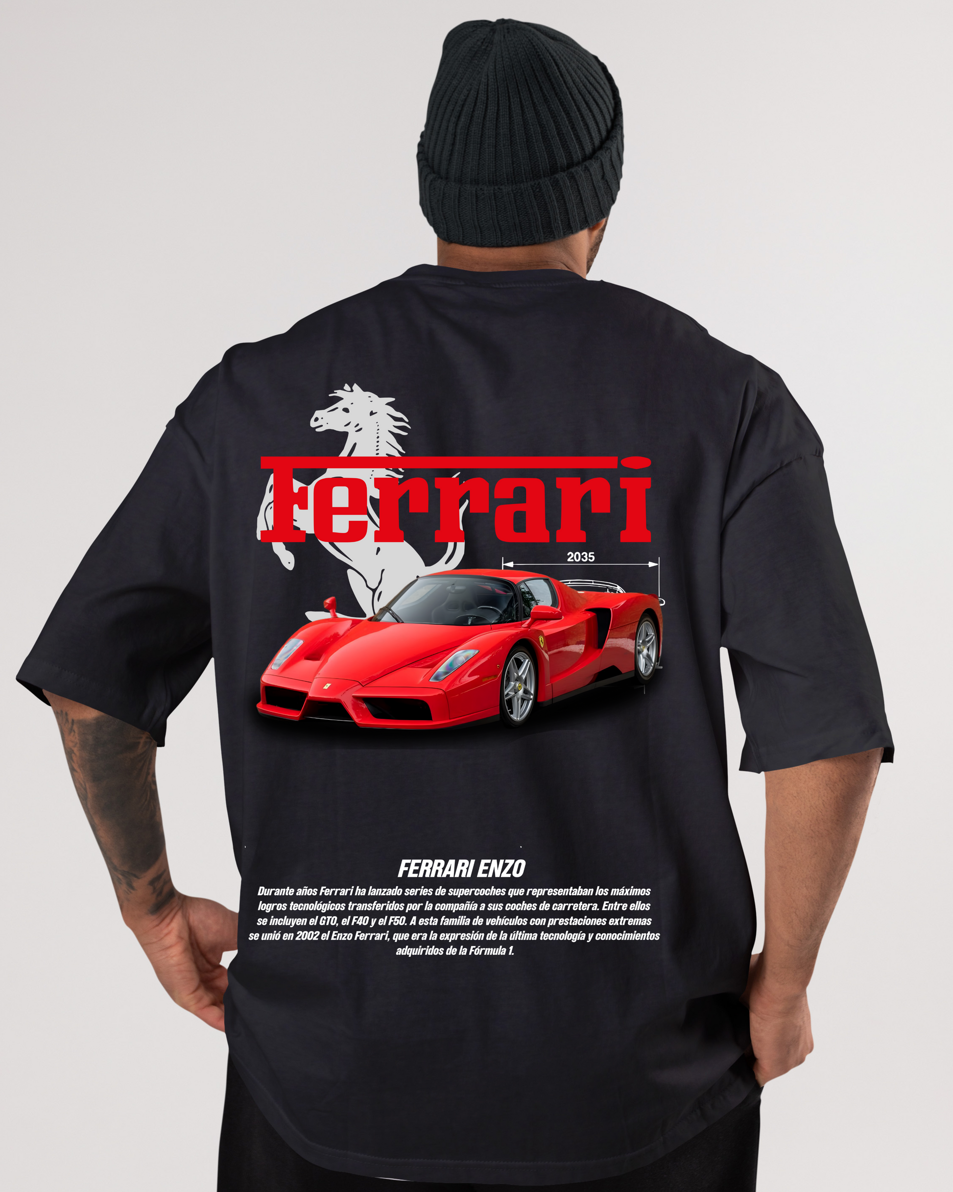 Unisex Black Ferrari Racing Graphic Oversized T-shirt